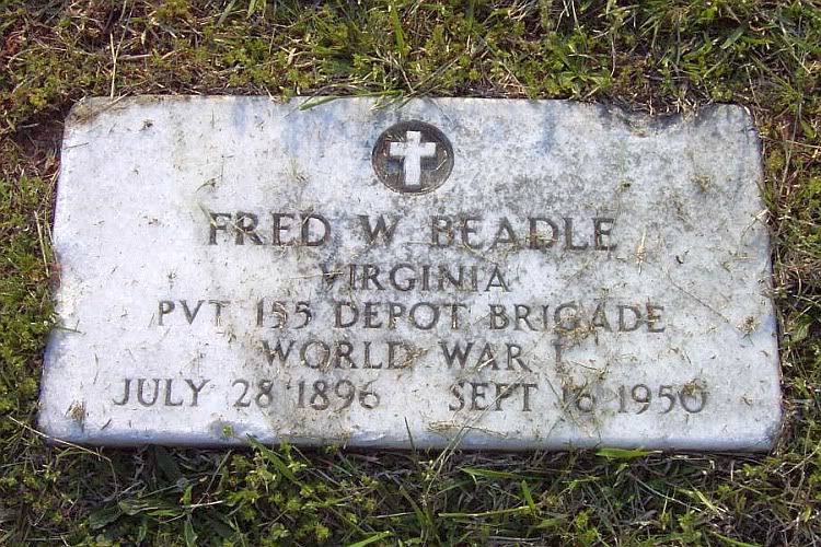This photograph of Frederick Williamson Beadle's gravestone was taken on April 18, 2005. The grave is in Mimosa Cemetery. The cemetery is at the intersection of South and Mimosa Streets in Davidson, North Carolina, at Latitude 35° 29.54′ North, Longitude 80° 50.95′ West.